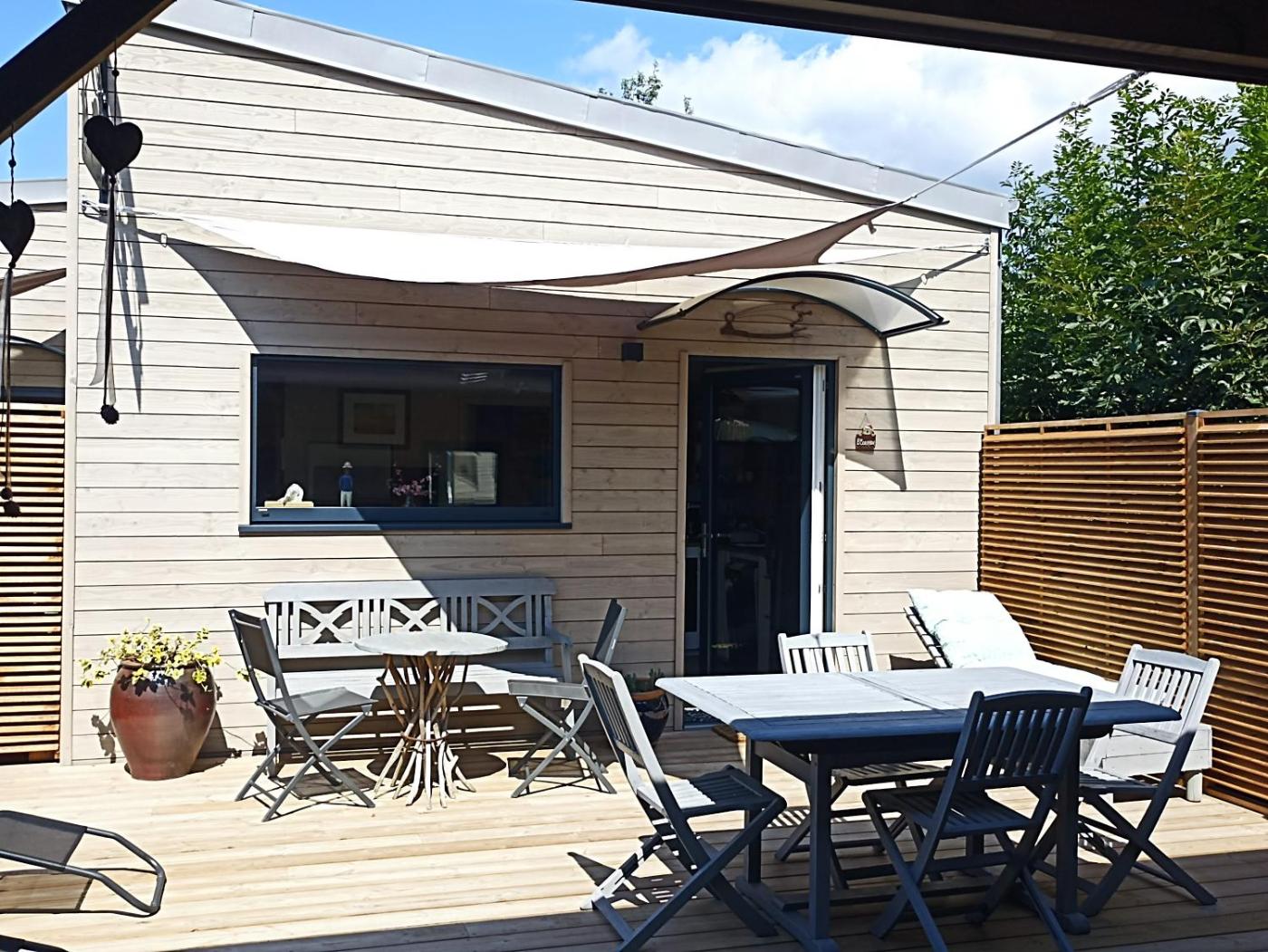 One-Bedroom House. Featuring a private entrance, this air-conditioned holiday home is comprised of 1 living room, 1 separate bedroom and 1 bathroom with a walk-in shower and a hairdryer. Meals can be prepared in the well-fitted kitchen, which is fitted with a stovetop, a refrigerator, a dishwasher and kitchenware. Boasting a terrace with garden views, this holiday home also offers soundproof walls and a flat-screen TV with streaming services. The unit offers 1 bed.
