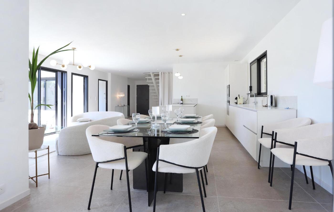Three-Bedroom Holiday Home. This holiday home features a private pool. This spacious holiday home features 1 living room, 3 separate bedrooms and 3 bathrooms with a bath and a shower. Guests will find a refrigerator, a dishwasher, kitchenware and an oven in the well-equipped kitchen. The holiday home also comes with a barbecue. The holiday home features a washing machine, a private entrance, a tea and coffee maker, a dining area and a TV. The unit has 3 beds and 2 futons.