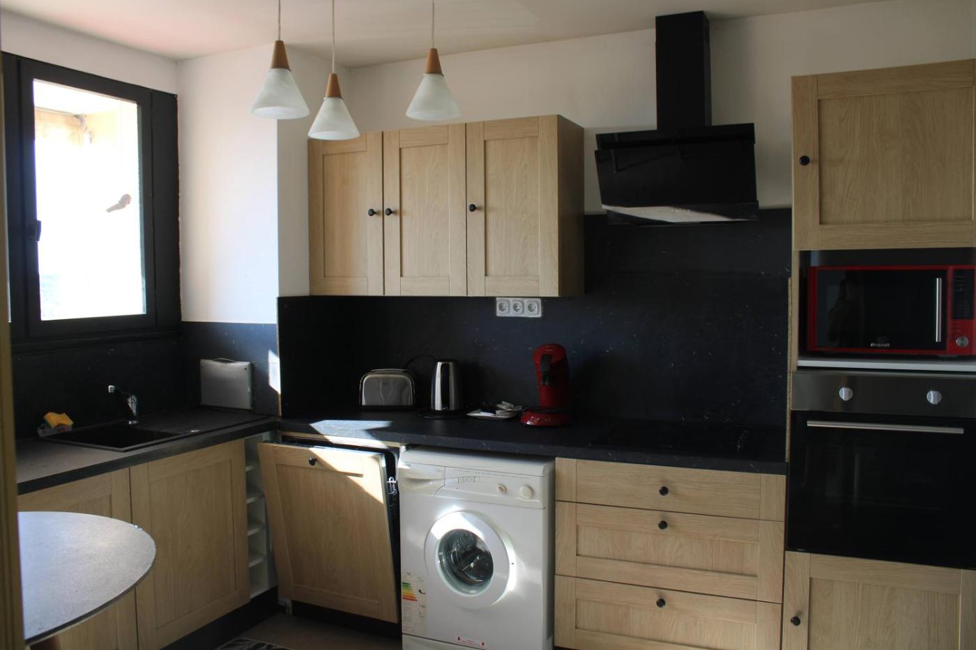 Three-Bedroom Apartment. This spacious apartment comes with 3 bedrooms, a kitchen and 1 bathroom with a walk-in shower and a hairdryer. The fully equipped kitchen has a stovetop, a refrigerator, a dishwasher and kitchenware. Boasting a balcony with city views, this apartment also features a washing machine and a flat-screen TV with satellite channels. The unit has 4 beds.