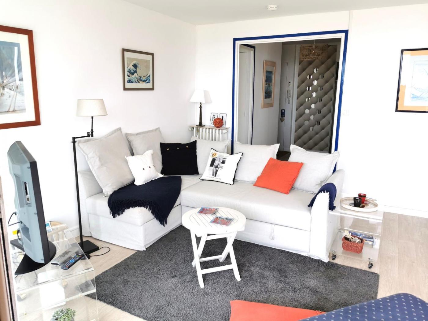 The apartment with a balcony and sea views features 1 bedroom, a living room, a TV, an equipped kitchen with a dishwasher and an oven, and 1 bathroom with a shower. Towels and bed linen are provided in the apartment. For added privacy, the accommodation features a private entrance.