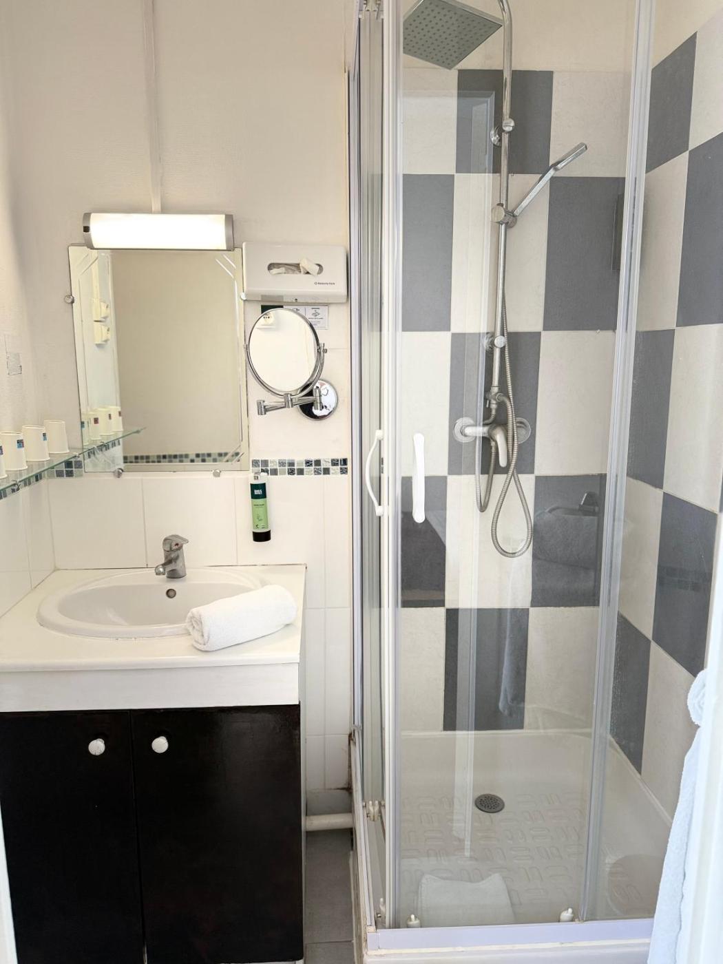 Triple Room. This room has a flat-screen TV with Canal + and a private bathroom with a shower. Interconnecting rooms are available. ;