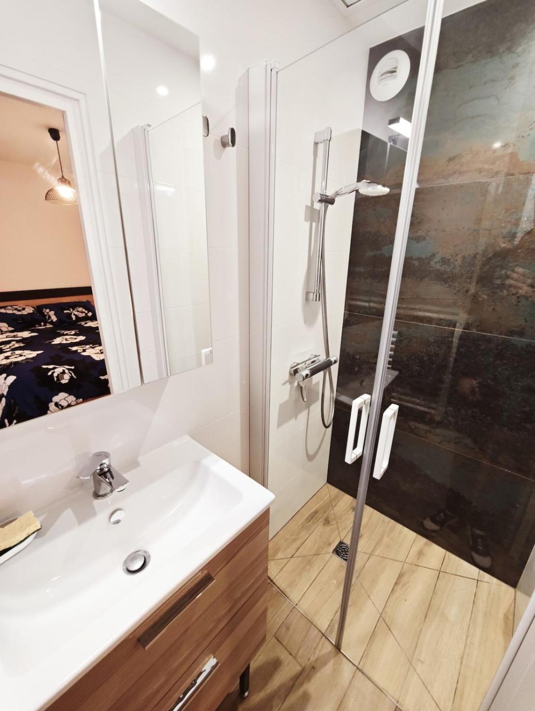 One-Bedroom Apartment. This apartment consists of 1 living room, 1 separate bedroom and 1 bathroom with a walk-in shower and a hairdryer. In the well-equipped kitchen, guests will find a stovetop, a refrigerator, a dishwasher and kitchenware. The apartment provides a flat-screen TV with satellite channels, a washing machine, soundproof walls, a coffee machine as well as ancourtyard view. The unit offers 2 beds.