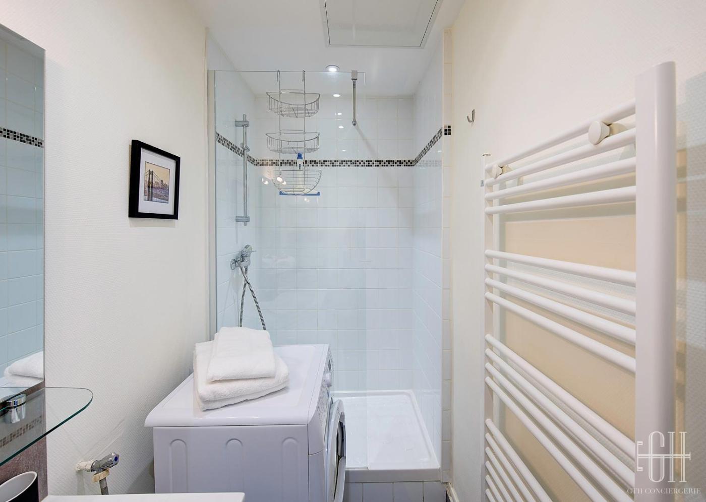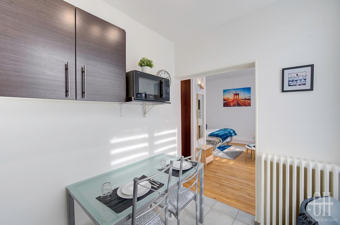 One-Bedroom Apartment. This apartment comprises 1 bedroom, a kitchen and 1 bathroom with a shower. Meals can be prepared in the well-fitted kitchen, which is equipped with a stovetop, a refrigerator, kitchenware and a microwave. The apartment provides a washing machine, a tea and coffee maker, a wardrobe, a flat-screen TV, as well as a quiet street view. The unit offers 1 bed.