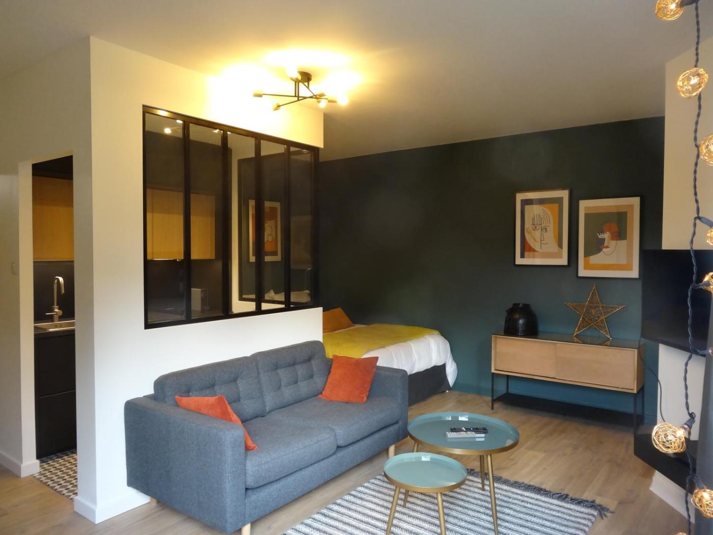 One-Bedroom Apartment. Meals can be prepared in the kitchen, which has a stovetop, a refrigerator, kitchenware and a microwave. The apartment has parquet floors, a seating area with a flat-screen TV, a private entrance, a tea and coffee maker, as well as a dining area. The unit has 1 bed.